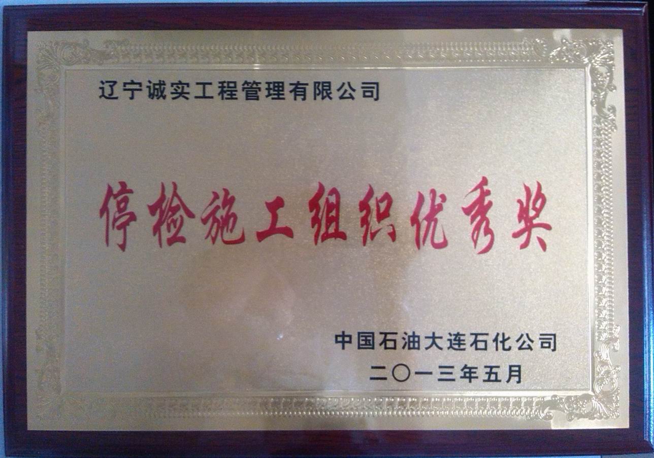 2013年大連石化停檢施工組織優秀獎