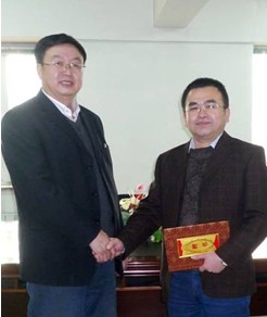 總經(jīng)理孫學(xué)良(左一)與張國(guó)富教授(左二)、